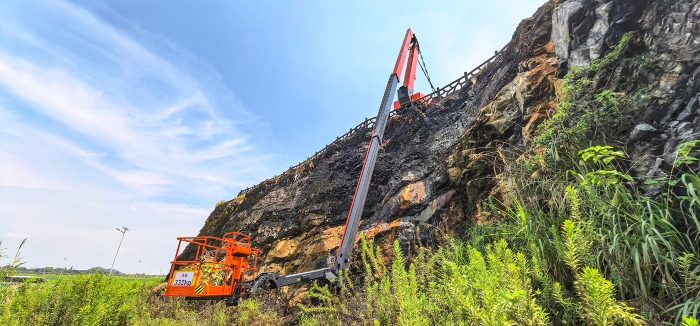 但其實,除了高度外,還有一項參數(shù)常常被人所忽視,那就是曲臂特有的下探本領(lǐng)。鑒于曲臂結(jié)構(gòu)的特殊性,它不僅可以“上天”,還特別能“入地”——尤其是應(yīng)對那些需要深度下探的復(fù)雜工況,比如礦坑作業(yè)、陡坡作業(yè)等。